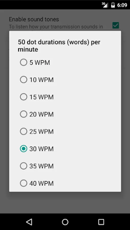 You can set the transmission rate from 5 WPM to 40 WPM (in 5 WPM steps).
