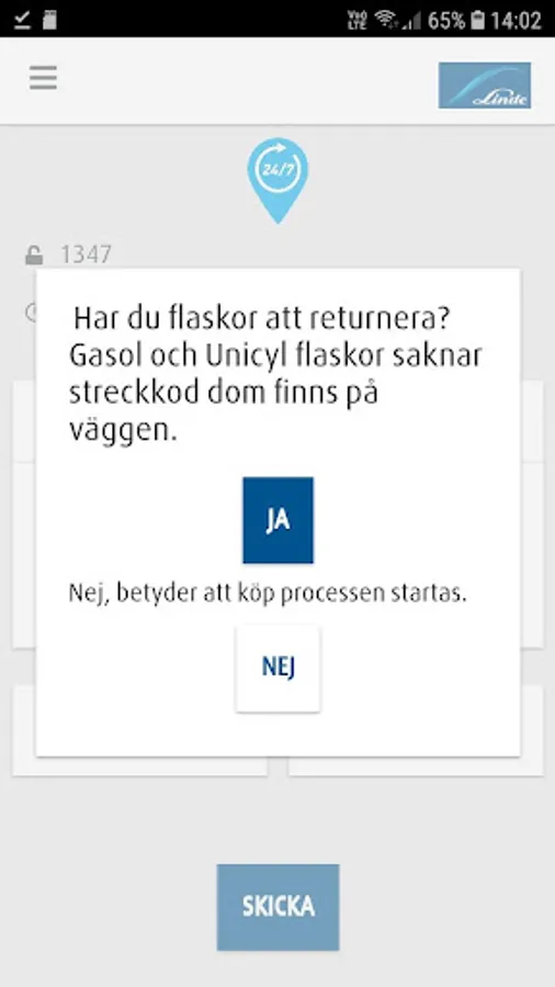 Gas 24/7 is a new service from Linde that enables you as a customer to buy, rent and replace your empty gas bottles around the clock, every day of the week. With Linde Gas 24/7 Nordics, you follow the instructions step by step and manage your purchases and exchanges at any one of our unmanned self-service locations.