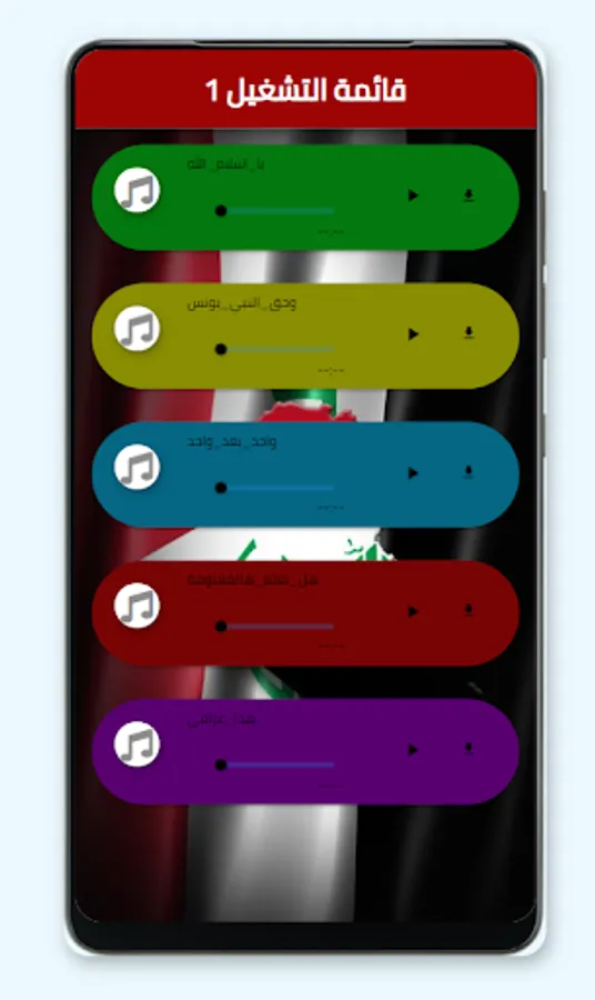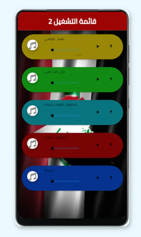 يقدم البرنامج اغاني تحرير الموصل و العراق مثل يا اسلام الله وحق النبي يونس و واحد بعد و هل تعلم هالمعلومة و هذا عراقي و علي صوتك و عراق الهيبة و اسمك و طكت والما و نشيد موطني و نازل اخذ حقي و منصورة ابغداد جديده و منريده و مانسكت ليش و شد حيلك و سمعت بغداد و الكثير