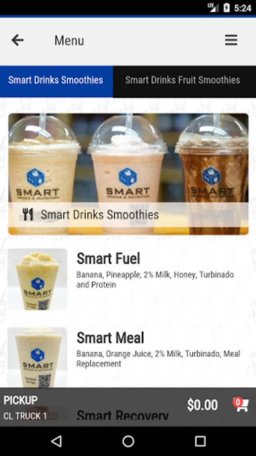 Use our convenient app for ordering your favorite drink from Smart Drinks right from your phone! Check our current location and menu items for the day. Earn Loyalty Points with each purchase good for discounts! You'll also receive coupon codes periodically that can be used at checkout.