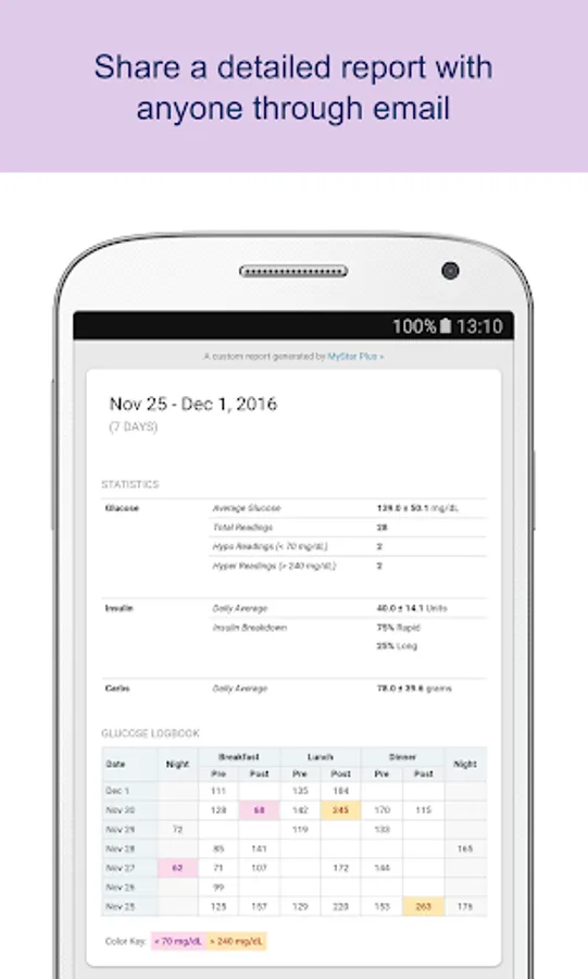 Simple graphs allow you to easily analyze your data and convenient functions support you to stay on track with your day-to-day diabetes management.