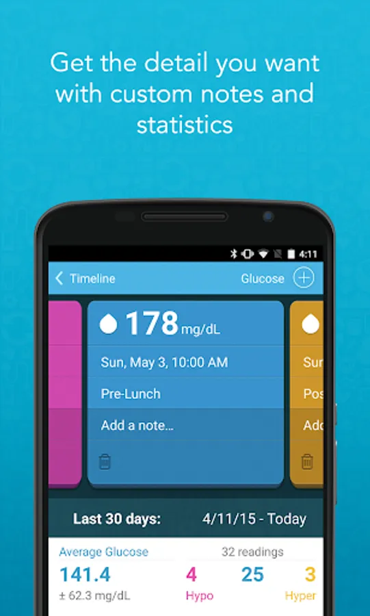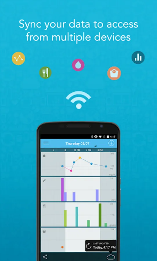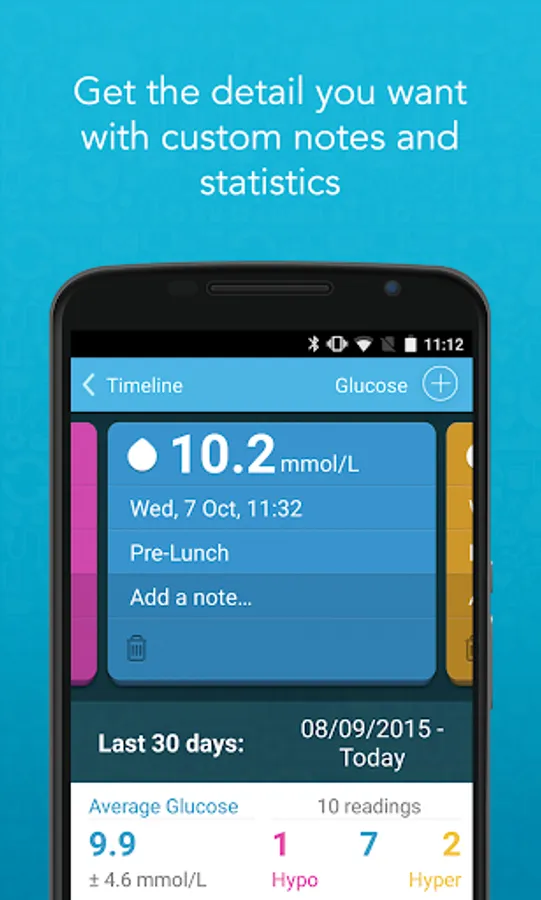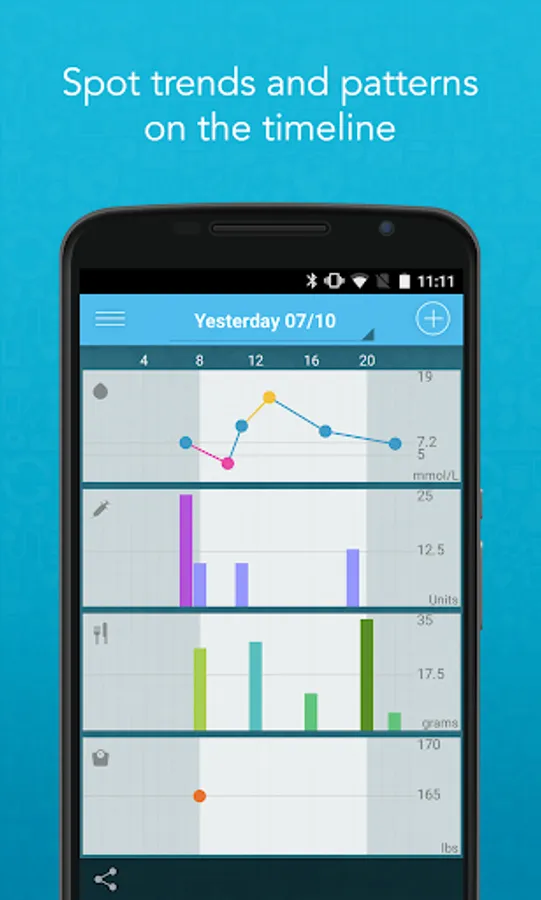 Record glucose, insulin, carbs and weight with a touch of a button.