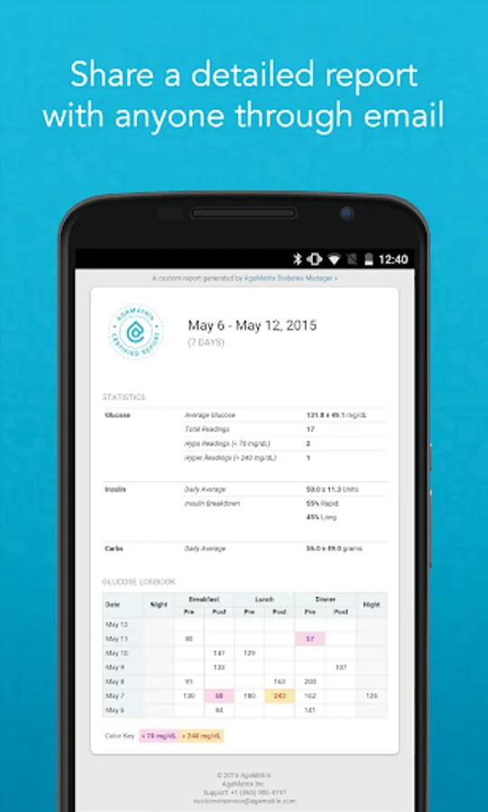 Invite your caregivers to view your glucose readings in real time, or email all of your data in a traditional logbook format.
