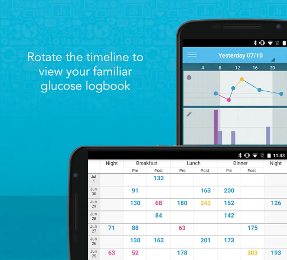 Rotate the app for the glucose logbook you know and love, organized by meal block.