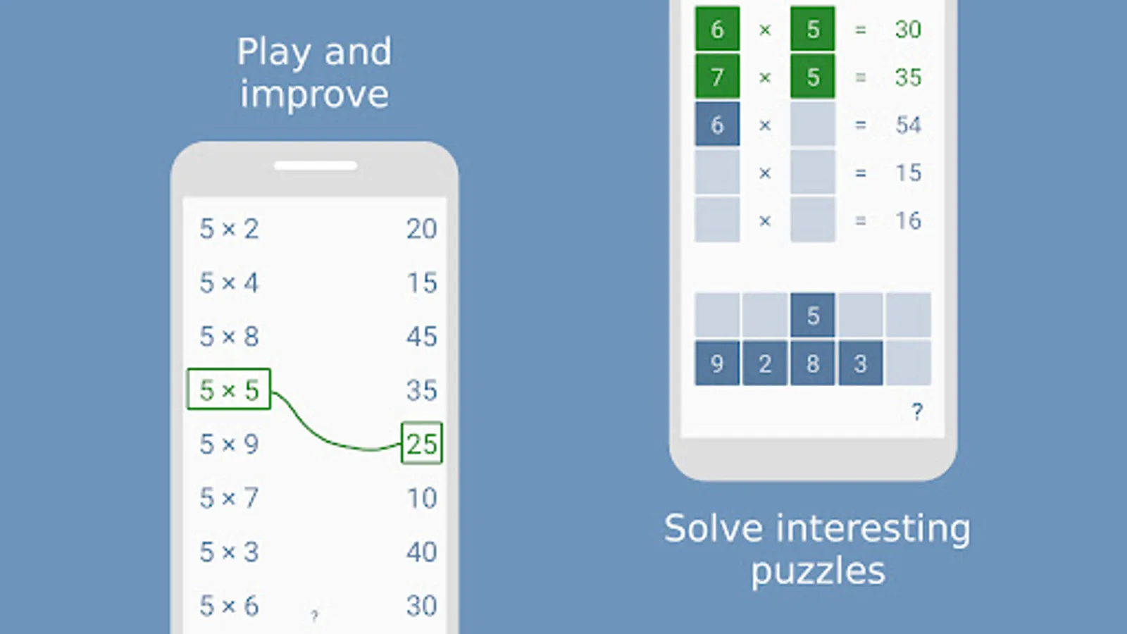 - Beginner games as simple as kindergarten math games – with times tables provided to have everything at hand for starting learning multiplication tables right in the app