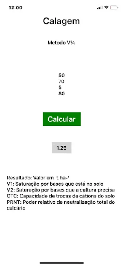 Application that calculates the need for liming through the V% method. In future updates will have other methods.