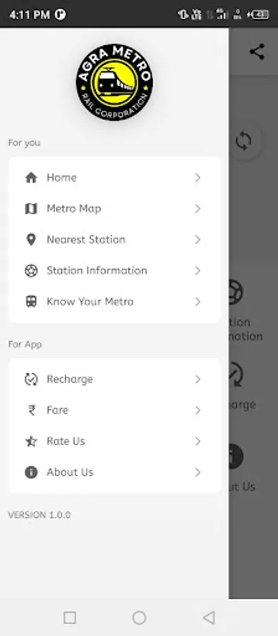 Explore Agra with ease using the Agra Metro app! Plan your metro journeys, find the nearest stations, and get real-time updates on train arrivals and departures. Navigate the city effortlessly, discover popular tourist destinations, and access helpful information about Agra's attractions. Whether you're a local resident or a visitor, the Agra Metro app is your ultimate companion for seamless travel across the city. Download now and experience the convenience of modern metro travel in the historic city of Agra.