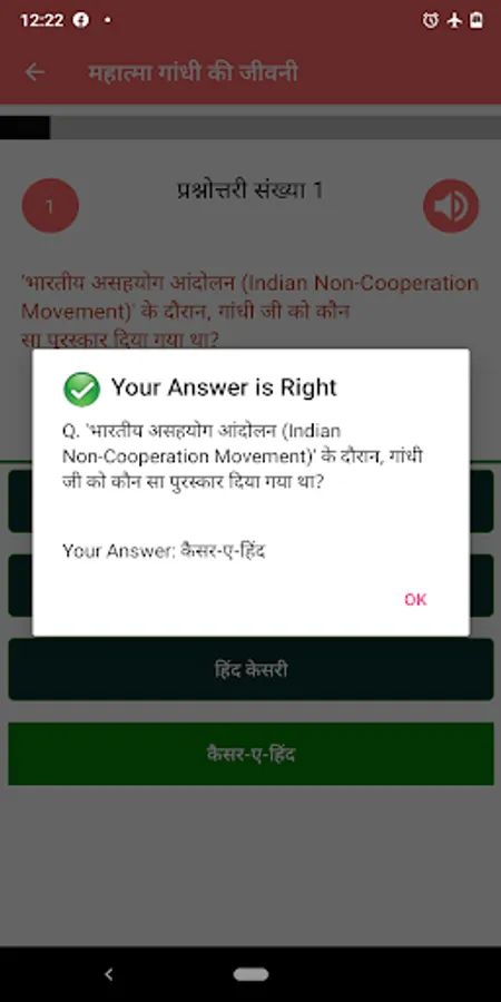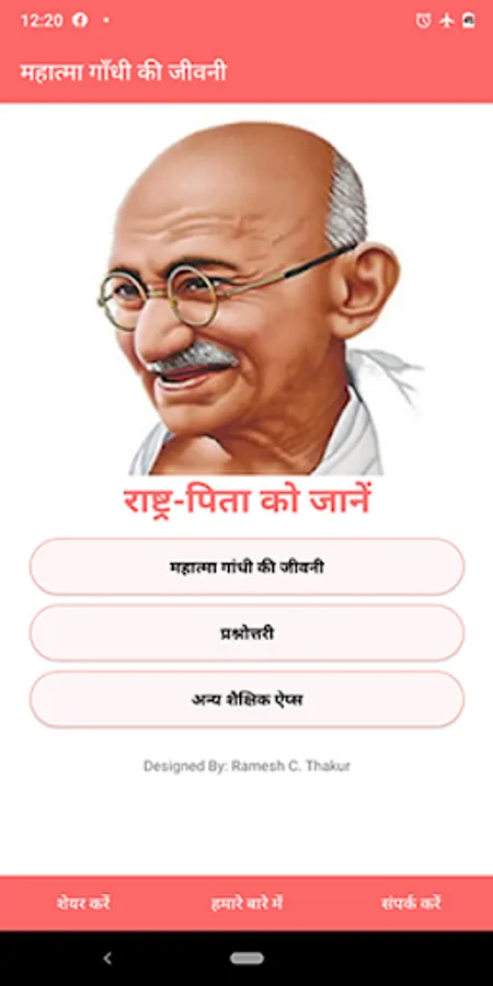 The App has quiz section that evaluates one's knowledge of Mahatma Gandhi.
