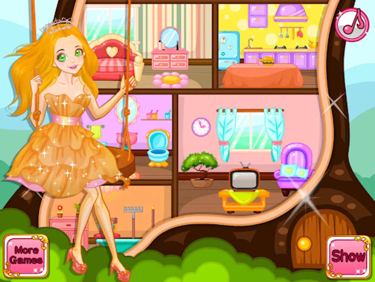 Welcome to the island of a princess, where fairytale dreams come true! Play this new and exciting home decorating game and design your dollhouse with a variety of specific rooms, furniture, and decorations. Once it's all done, choose from more than dozens of completely different looks for the inside of your doll house in girl games. This doll house interior decoration game of designing and decorating the rooms of the princess doll's house is a fun and engaging two-dimensional princess house games designed for girls. In this house girl game of dollhouse games for girls, players can decorate and furnish a variety of rooms in the princess doll house design girl games, such as the bedroom, bathroom, and kitchen. including interior design games and doll house design girl games and more.