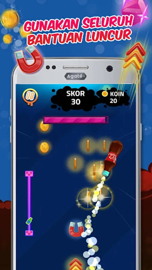 In the Ngegas Bottle, you are required to hold your bottle to get as many coins as possible. You can use these coins to collect various bottles so you can be more powerful! In addition, there will be lots of exciting daily missions with various prizes if you finish them.