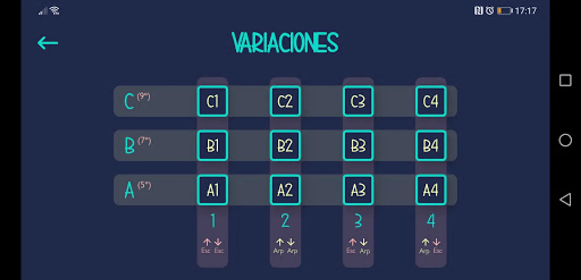 EscArp is a method for learning to study scales and arpeggios of all kinds and in all tones in just 12 steps.