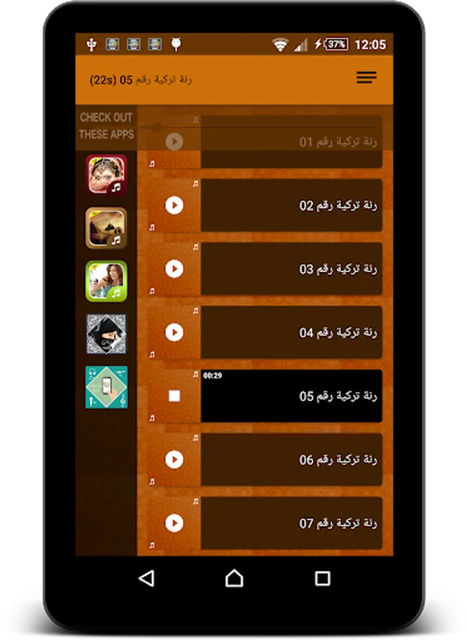 Turkish romantic ringtones application includes a group of the finest Turkish movies and TV series music (Samhini series, Valley of the Wolves series) and also includes quiet tones, sad Turkish ringtones, romantic songs, popular tunes, Turkish Kurdish ringtones