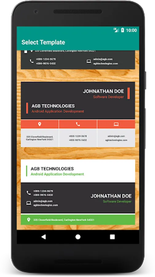 App also includes free business card templates that are according to standard visiting card size. Templates are designed by professional graphic designers and are according to the elegant and new business card design.