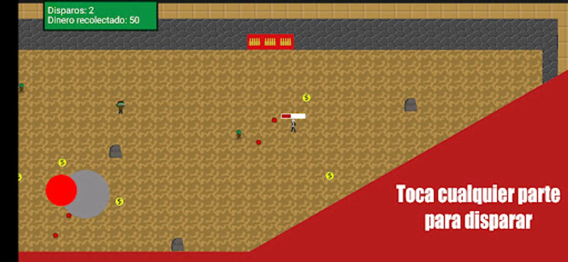 Survive as long as possible to collect the most money, shoot to kill zombies and keep an eye out when you run out of bullets to reload.