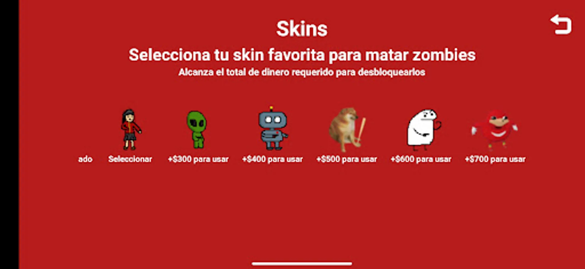 Earn a certain amount of money and unlock fun skins to kill zombies like Cheems. Flork and Ugandan Knuckles, among others.