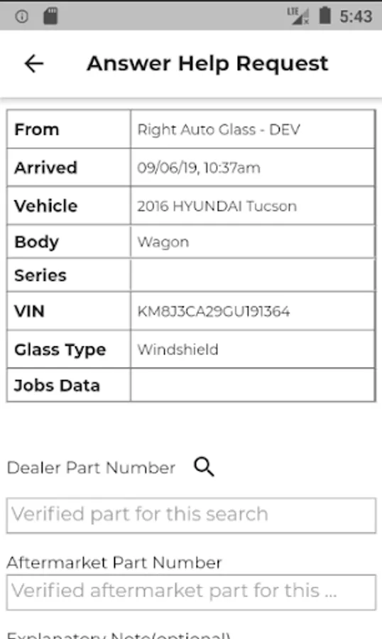 AutoGlassCRM Help Request Responder for VIN Decoder.