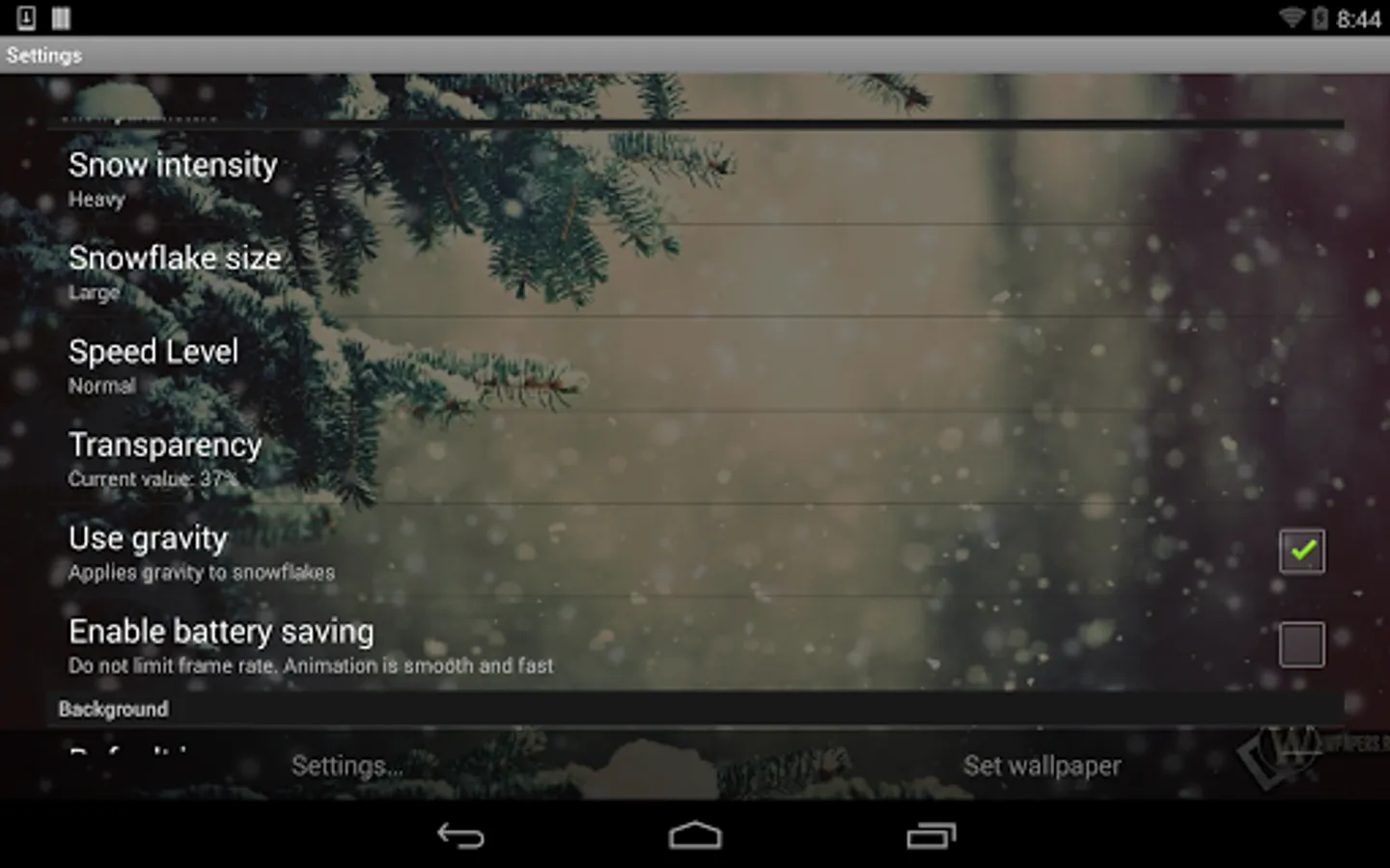 • Gravity sensor support: Snowflakes are falling accordingly to device orientation
