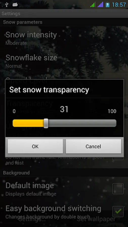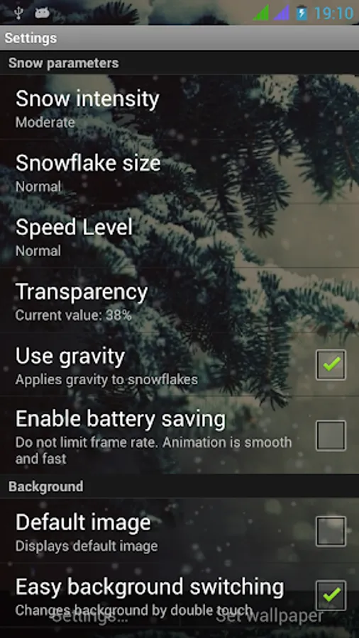 Lovely Snowfall Live Wallpaper is a nice application showing you realistic beautiful snow on your screen. Install it and enjoy winter snow on your screen!