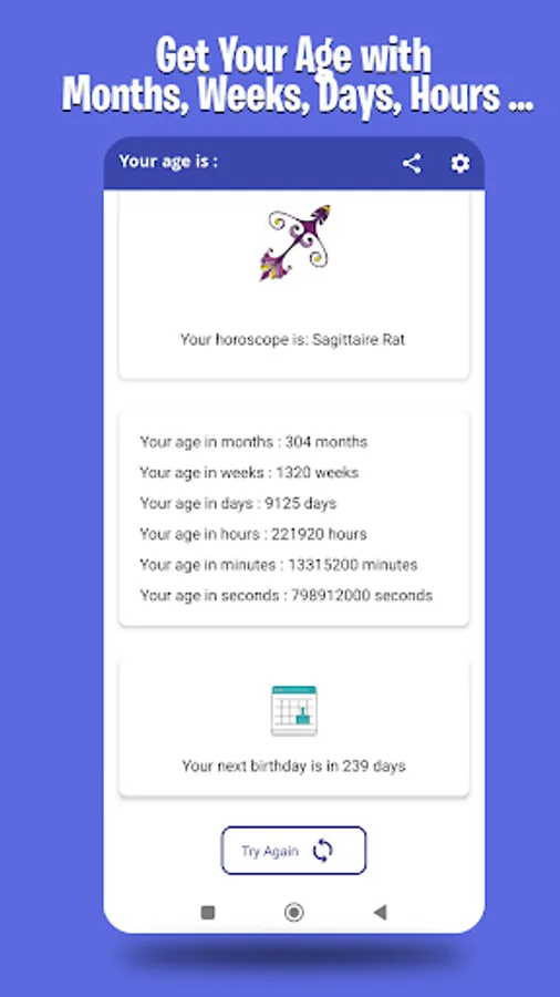 Whether you're curious about your own age or need to calculate someone else's age, our app is the perfect tool to calculate your age exactly.