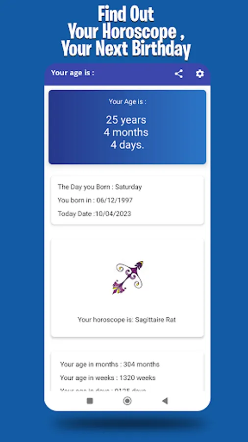 Look no further! Age Calculator - How Old I Am ? is the perfect tool for that, our app will do the work for you, an easy age finder, simply enter your birthdate and our app will instantly calculate your age down to the exact day.