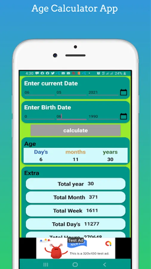 Age Calculator Application is absolutely free of cost. It is free to use For all, all the features in this application and to share among others is also free.