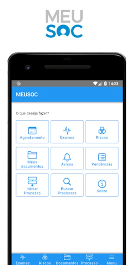 Unlike the website or SOC application, aimed at companies, the MEUSOC application is aimed at employees, giving the worker autonomy to schedule their occupational exams on the day and time that best fits their routine.