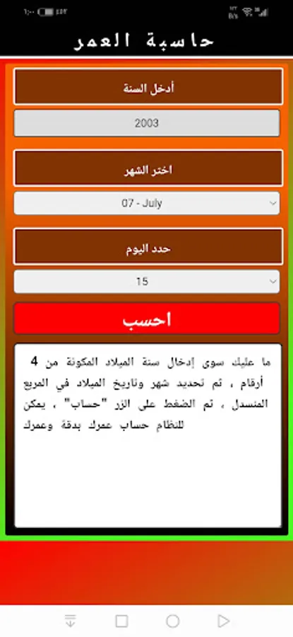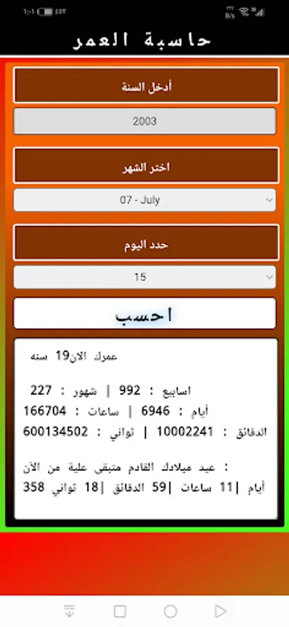 Calculate your age is an application through which you can calculate your age in years, months and days, calculate your age in Hijri and calculate your age in Gregorian.