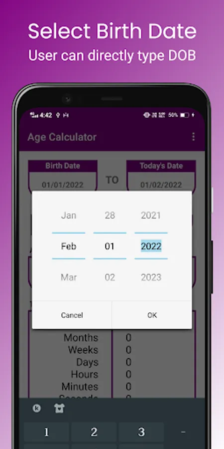 • There is no need of typing today's date *age Calculator* automatically get today's date.