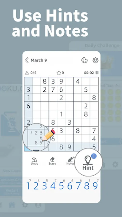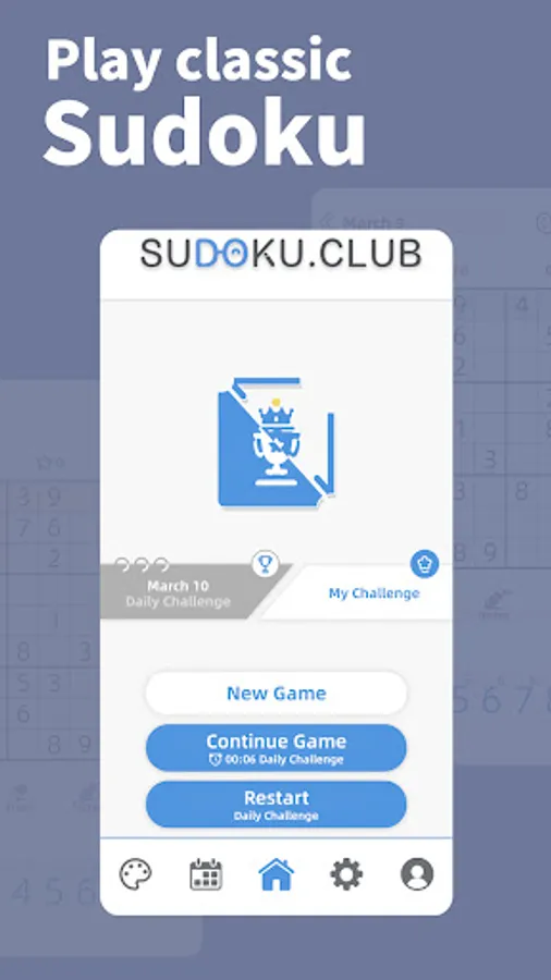 - Daily Challenge & My Challenge: you can challenge every day to practice your skills of playing sudoku