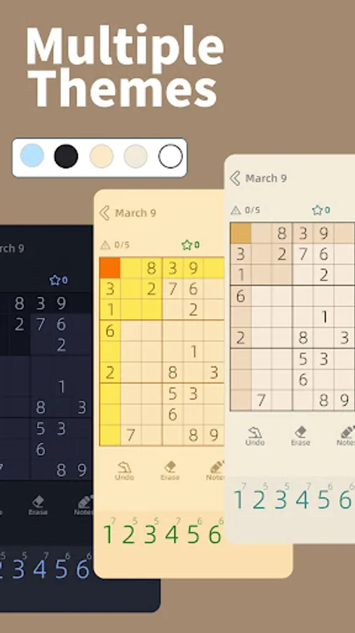 Our sudoku is committed to improve your game experience. It has 4 levels of difficulty for players with different capabilities of sudoku, from beginners to masters on sudoku. Also, it has various functions to help you win the game, such as Hint, Undo/Redo, Take Notes, etc. Moreover, you can practice your skills and challenge yourself by playing Daily Challenge and My Challenge. We are sure you can have great fun and better game experience when you are playing our sudoku.