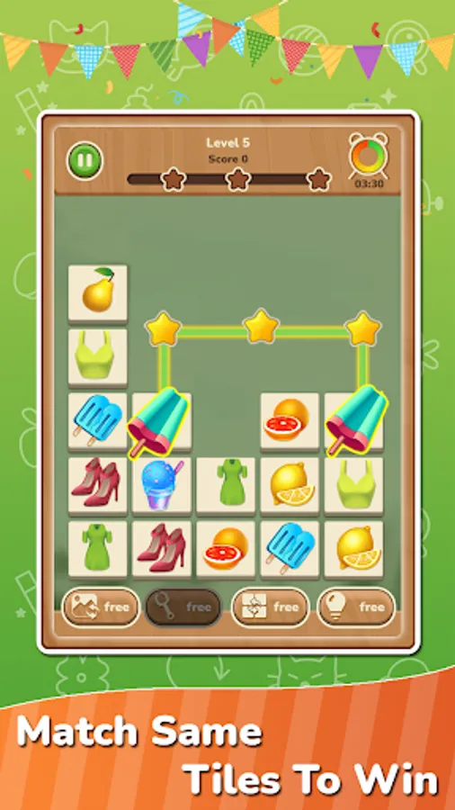 1. To connect and match, you need to find two tiles with the same pattern in a pile of pattern tiles.