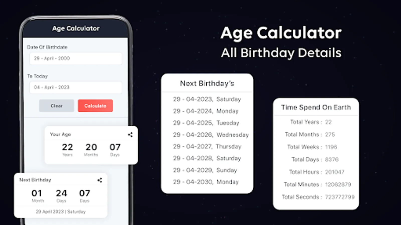 The Age Calculator app is a highly accurate and user-friendly tool. You can determine your age with easy to use tool.