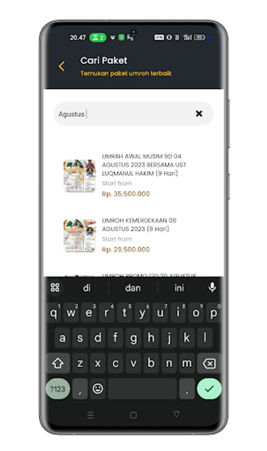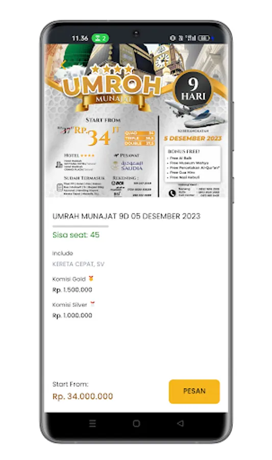 In the Sanema Tour application, users can choose the Umrah package they want, view detailed travel itineraries, select departure dates, and easily order packages. This application also provides information regarding fees, facilities provided, and recommendations for lodging in Mecca and Medina.