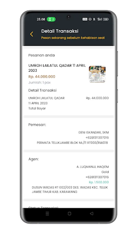 In addition, users can also monitor the status of their orders through the application, including information regarding flight tickets, accommodation, and travel schedules while in the Holy Land. The Sanema Tour application also provides a feature for making payments online, so users don't have to bother making payments in person at the office.