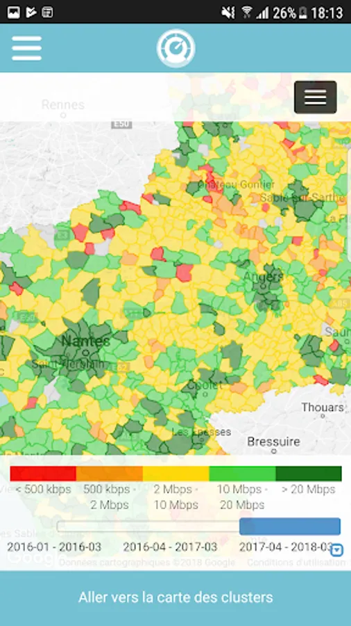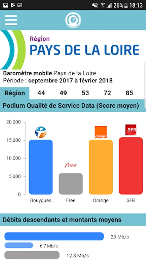 This application will enable the inhabitants of the departments of Loire-Atlantique, Maine-et-Loire, Mayenne, Sarthe and Vendee constitute reliable coverage and performance available or being deployed mobile networks.