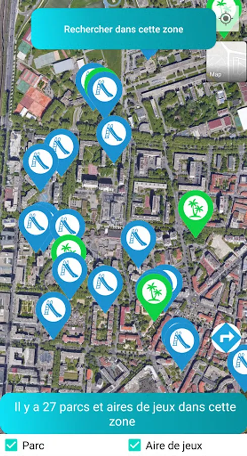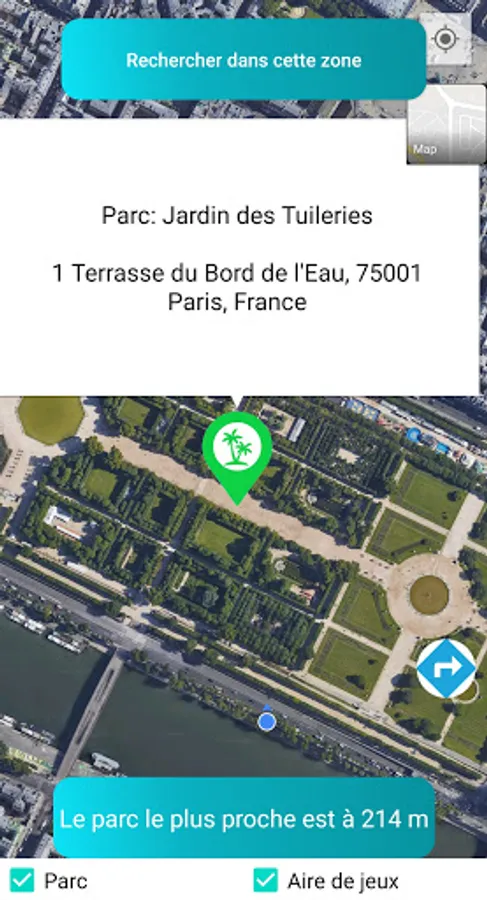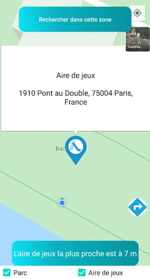Park & Playground allows you to find the closest park and playground from among 100,000+ listed parks and play areas. It displays the distance between the user's position and the nearest park or playground. The Parks and Playgrounds app can display all nearby parks and play areas. It can switch to a satellite map to better locate nearby parks and playgrounds. In addition, Park & Playground displays information on parks and play areas: the type of space (park or play area), address, city and GPS coordinates of the park or play area. games. The Parks and Playground Finder helps create a route to easily get to parks and playgrounds with Google Maps. It can also refocus the map on your location to better find nearby parks and play areas. Support parks and playgrounds in almost any country.