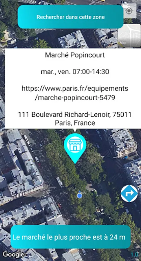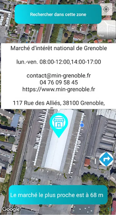 Marché allows you to find the closest market among 3000+ identified markets. It displays the distance between the user's position and the nearest market. The Markets app can display all nearby markets. It can switch to a satellite map to better locate nearby markets. In addition, Marché displays market information: times, email, website, address and city of markets. The Market Finder allows you to create a route to easily get to markets with Google Maps. It can also refocus the map on your position to better find nearby markets. Support the markets of almost any country.
