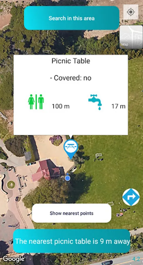 Picnic Table allows you to find the nearest picnic table among 130,000+ registered picnic tables. It displays the distance between the user's position and the nearest picnic table. Picnic tables app can show all nearby picnic tables. It can switch to a satellite map to better locate nearby picnic tables. In addition, Picnic Table displays information about picnic tables: address, city and GPS coordinates of picnic table. The picnic table locator allows you to create a route to easily get to picnic tables with Google Maps. It can also refocus the map on your position to better find nearby picnic tables. Support picnic tables in almost all countries.