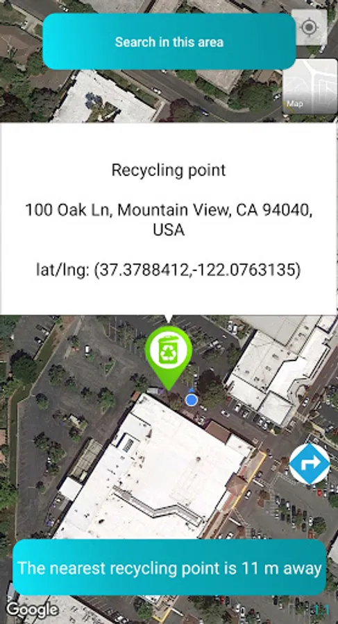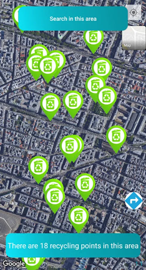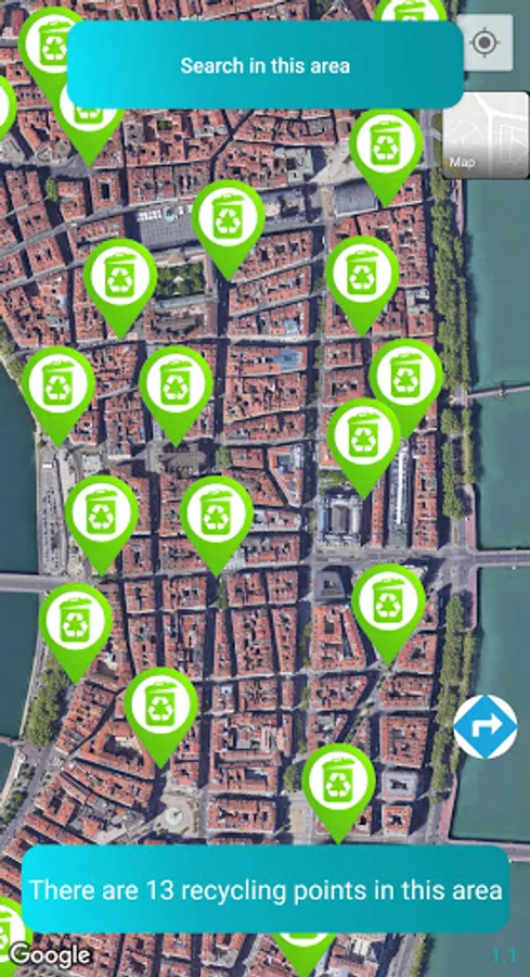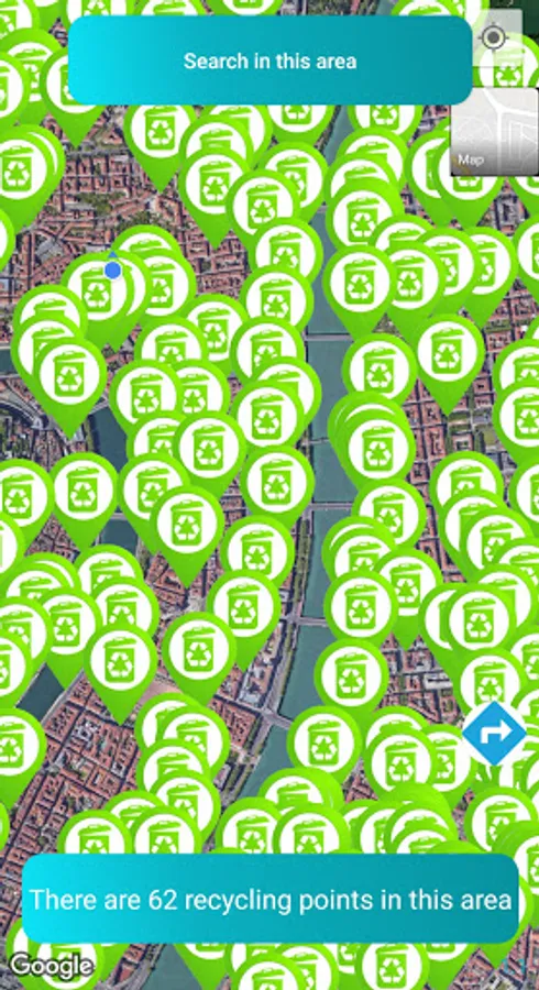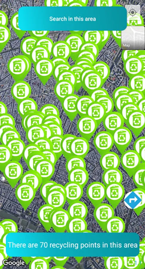 - switch to a satellite map to better locate nearby recycling points.
