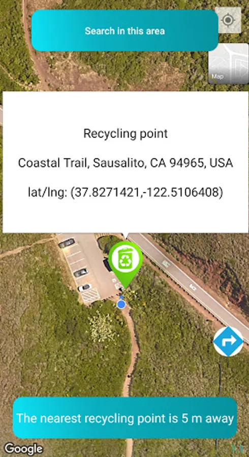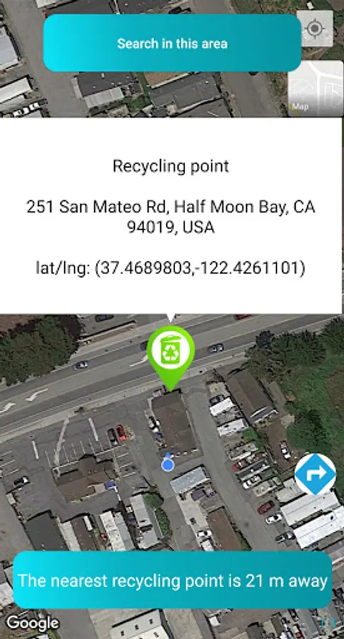 Recycling point allows you to find the nearest recycling point among 250,000+ recycling and sorting points identified. It displays the distance between the user's position and the nearest recycling point. The recycling points app can display all nearby recycling points. It can switch to a satellite map to better locate nearby recycling points. In addition, Recycling Point displays information of recycling points: the type of recycling point, address, city and GPS coordinates of the recycling point. The recycling point finder allows you to create a route to easily get to recycling points with Google Maps. It can also refocus the map on your position to better find nearby recycling points. Support recycling and sorting points in almost all countries.
