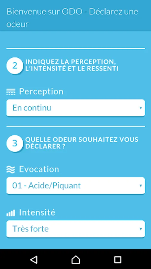 Odo is an application for declaring a smell felt in France. Smells identified by the application will be used to fight against olfactory pollution.