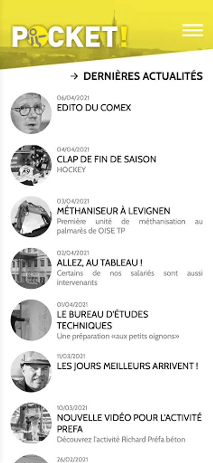 The Pocket app! is reserved for employees and partners of the Lhotellier Group and requires access authorization. This application will allow you to view the group's information and news in real time and to benefit from notifications for important information.