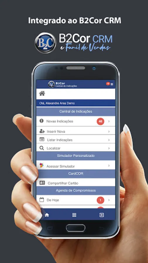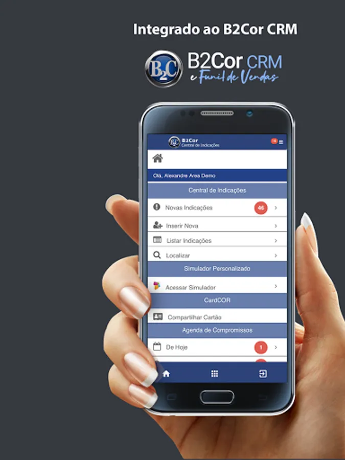 In addition to SIMP Simuladores Online, through this application you access B2Cor CRM and Sales Funnel *, facilitating your control of businesses that are in progress and the visualization of new Leads (indications) that you receive.