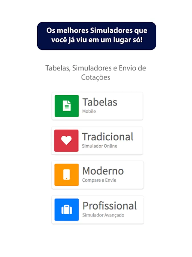 The SIMP App - Simuladores Online application is a fantastic tool designed to make system users more agile. Developed by AgenciaLink, the SIMP App puts the resources of the most famous SIMULATORS in the market for health and insurance plan brokers in the palm of your hand!