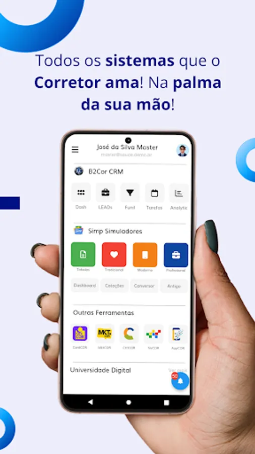 This solution puts the indications Center to reach the broker anywhere, without the need to connect to a computer or notebook - all information is just a touch.