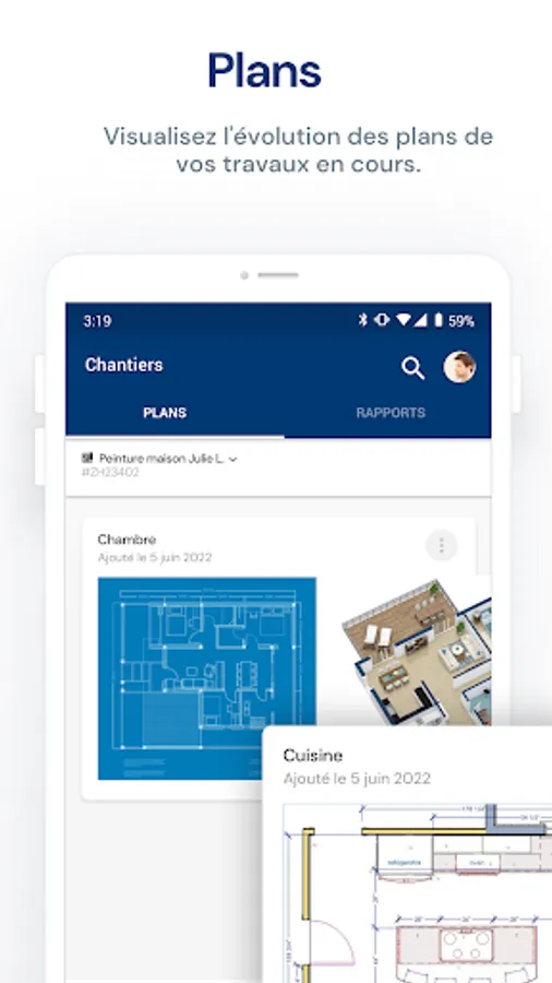 The Brickeo app allows you to keep an eye on your renovation or construction work on your home, while staying informed daily and live of the progress of operations.