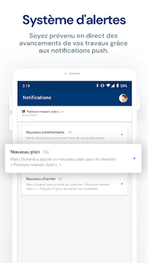 At each stage, stay informed of the progress of your work thanks to push notifications.
