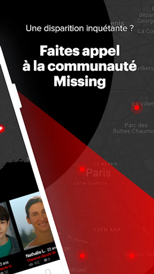 Missing person?, Missing animal?, Missing object or car? Do not hesitate ! Download the Missing app and report your disappearance. Add useful information, your photos and your clues: with you and all together, the Missing community will take care of helping you in your research. Let's be united and united.