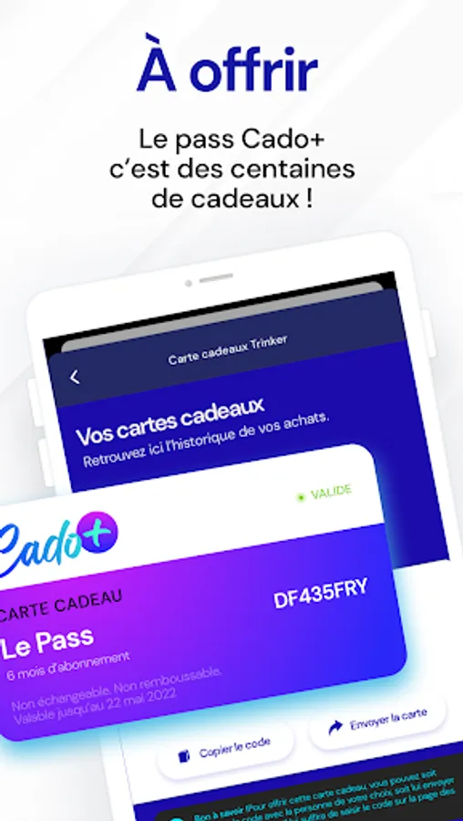 The CADO+ application offers you special offers and gifts in all CADO+ partner establishments.