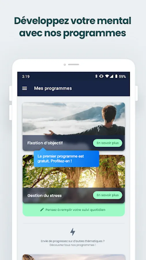 Do not hesitate any longer and download the YouPrep application today to develop your mind and achieve your goals. Good news ! The first program is 100% free for one month.